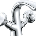 Тип: для умывальника, двухвентильный • Монтаж смесителя: настольный • Струя: высота 86 мм, глубина 116 мм