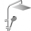 Устройство: душевая система • Смеситель: термостатический • Ручной душ (душевая лейка): размер 108 мм, настройки 2 шт • Верхний душ (тропический): размер 230 мм, настройки 1 шт • Комплектация: ручной душ, верхний душ, смеситель, стойка, шланг, крепление ручного душа