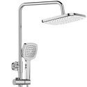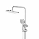 Душевая система с термостатом. В комплекте: смеситель с термостатом и поворотным изливом, телескопическая штанга, верхний душ d265 мм с регулируемым углом наклона, ручной душ, регулируемый по высоте и наклону держатель, шланг 1500 мм в металлической оплетке.