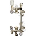 В насосно-смесительном узле VALTEC COMBI для водяных теплых полов приготовление теплоносителя с температурой от 20 до 60 °С происходит за счет подмеса жидкости из обратной линии. Регулирование осуществляется двухходовым клапаном, установленным в подающем коллекторе и управляемым термостатической головкой с выносным погружным датчиком, который размещен на выходе смесительного узла.(При использовании контроллера отопления функция управления клапаном передается ему.) Балансировочный клапан в линии подмеса
