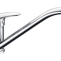 Назначение: кухонный • Конструкция: однорычажный • Монтаж: горизонтальный • Клапан: керамический • Материал: покрытие - хром • Подводка: гибкая • Монтажные отверстия: 1 отверстие • Форма излива: традиционная • Душевая лейка в комплекте: нет • Аэратор: есть • Донный клапан в комплекте: есть